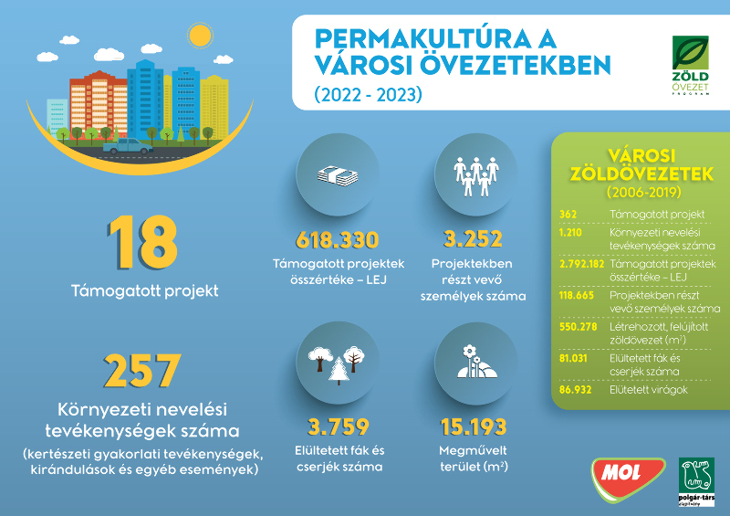 2023-ban összesen 22 projekt 812.371 lej összegű támogatásban részesült, amely projektekben a resztvevők száma meghaladja az 5.500 főt. A Permakultúra a városi övezetekben komponens keretében 8.086 négyzetméter földterületet műveltek meg, ahol több mint 1.800 fát és cserjét, különböző fűszer- és aromanövényeket ültettek, valamint zöldségféléket és bogyós gyümölcsöket termesztettek.